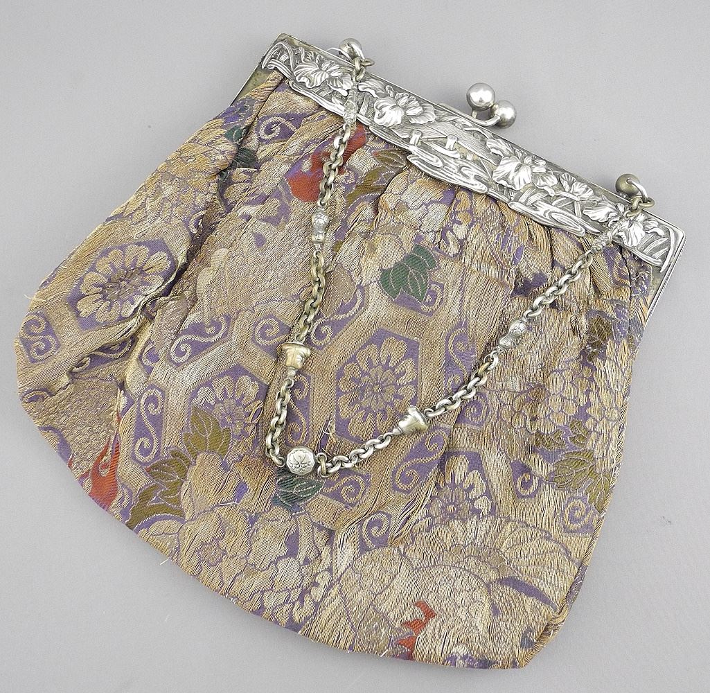 LOT 238 Japanese Handbag with Silver Plated Frame, 10"w. Estimate: $80 - $120 Auction Date: Tuesday, December 03 2024 at 4:00 PM
