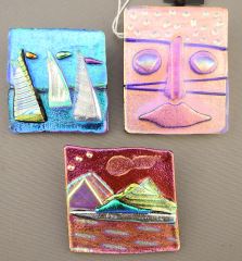 3 Art Glass Brooches, "Young Heart" Design by D. Robinson.