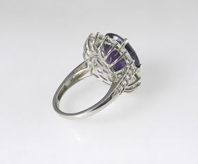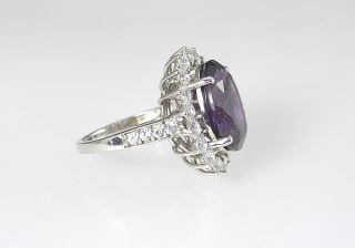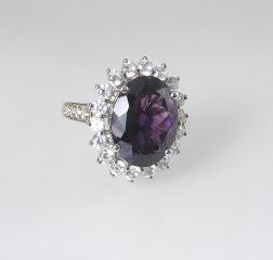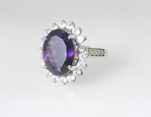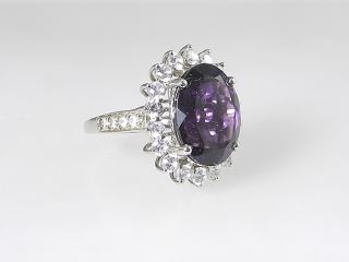 Sterling Silver (marked 925) African Amethyst & Zircon Dinner Ring, Size 9 1/8, 6.46g.