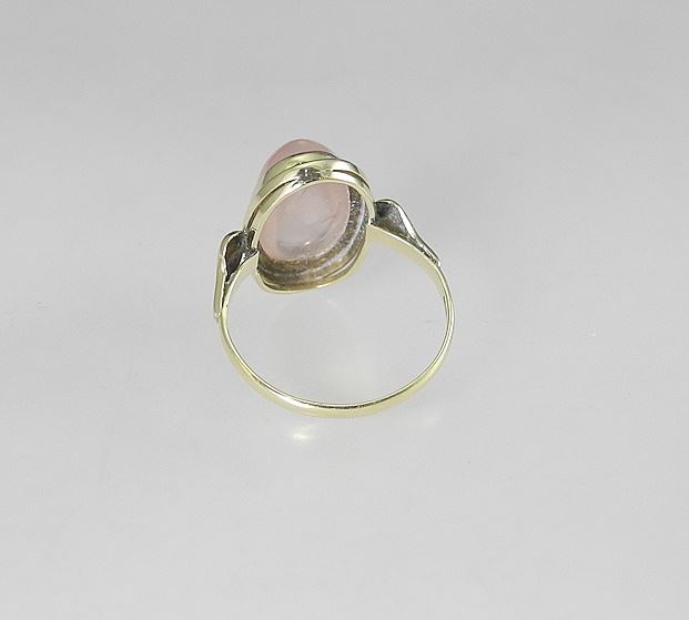 LOT 97 14K (marked 585) Yellow Gold & Rose Quartz with Cabochon Ring, Size 6 1/4, 3.3g. Estimate: $120 - $180 Sold For: $120 Auction Date: Tuesday, December 03 2024 at 4:00 PM