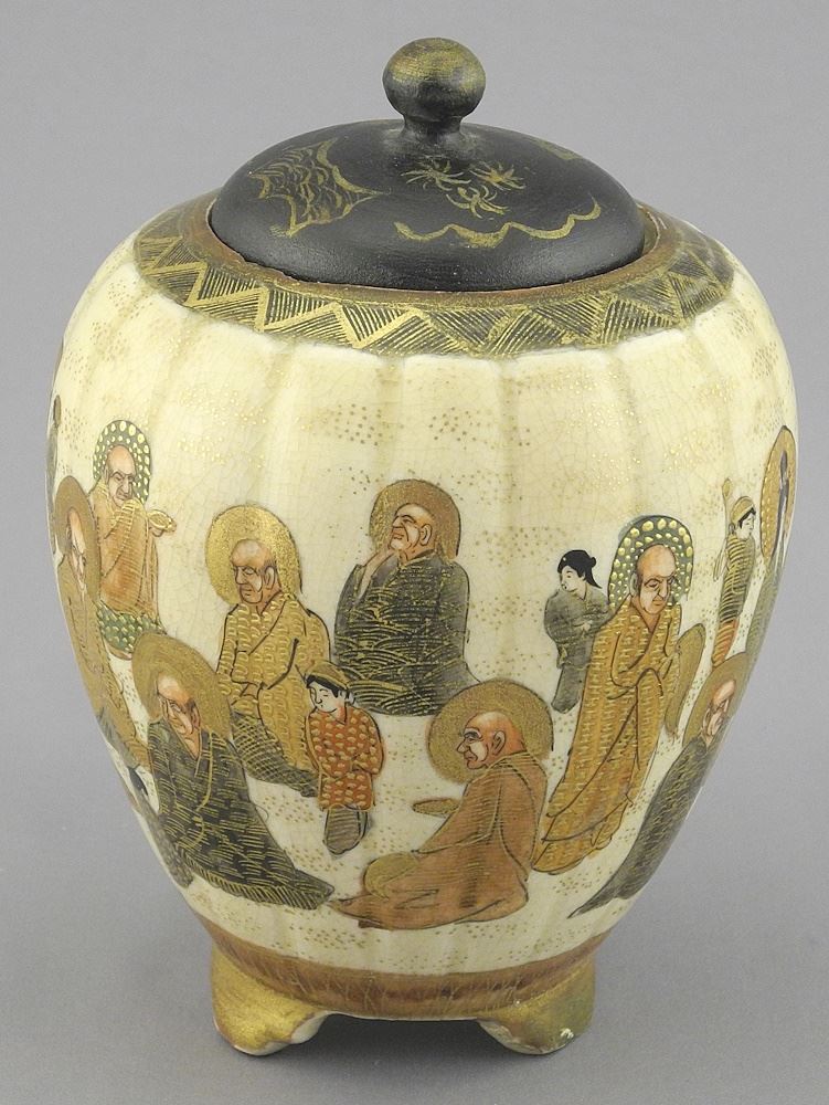 LOT 276 Satsuma Lobed Urn with Later Wood Cover, 4 5/8"h. Estimate: $80 - $100 Sold For: $50 Auction Date: Tuesday, December 03 2024 at 4:00 PM