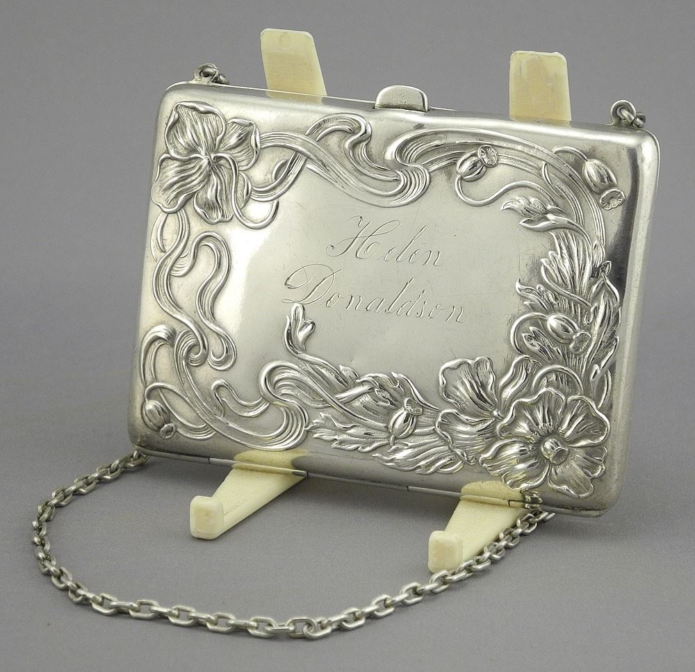 LOT 235 Sterling (marked) Silver Art Nouveau Change Purse, 3 1/2"w, 93.9g, Inscribed. Estimate: $150 - $200 Auction Date: Tuesday, December 03 2024 at 4:00 PM