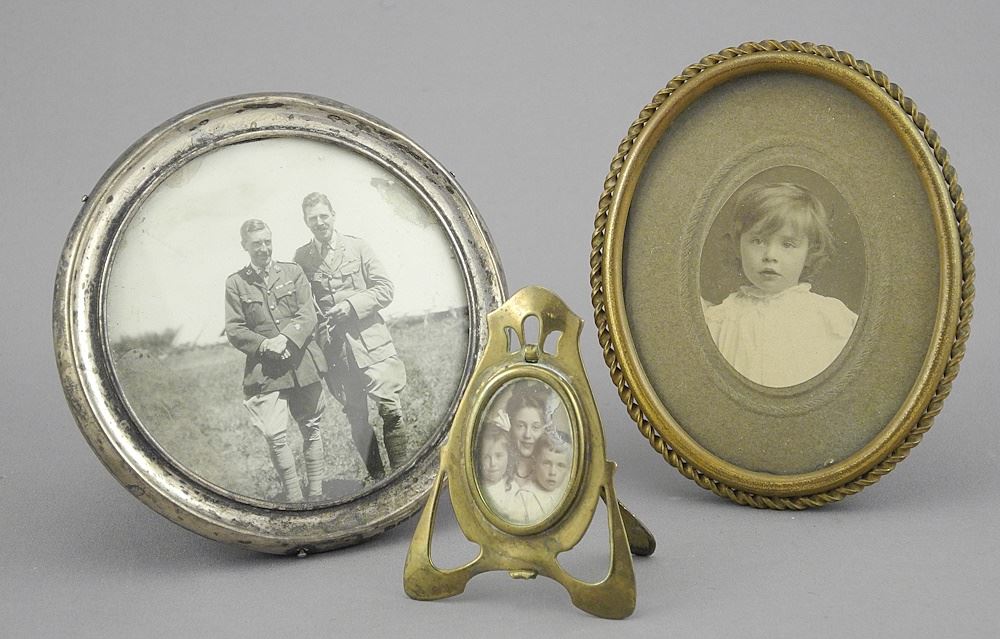 LOT 70 6 Photograph Frames: 4 Sterling Silver / 2 Brass, 2 1/4" - 7 1/4"h. Estimate: $200 - $300 Sold For: $160 Auction Date: Tuesday, December 03 2024 at 4:00 PM
