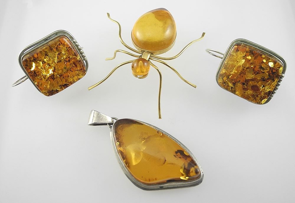 LOT 317 3 Amber Jewelry Items: Pair of Earrings / Pendant / Insect, TW 30.3 g. Estimate: $60 - $100 Sold For: $45 Auction Date: Tuesday, December 03 2024 at 4:00 PM