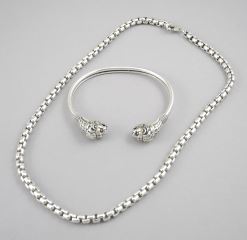 LOT 298 Silver Necklace (marked 925) & Lion Bangle, 17 1/2"L, TW 74.3g. Estimate: $80 - $100 Sold For: $80 Auction Date: Tuesday, December 03 2024 at 4:00 PM