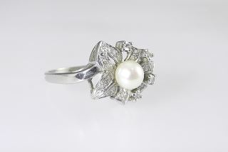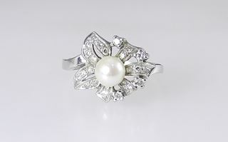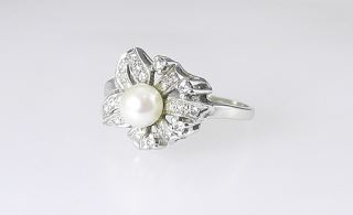 LOT 54 18K (marked) White Gold Pearl & Diamond Ring, Size 10, 5.44g with Appraisal. Estimate: $500 - $600 Auction Date: Tuesday, December 03 2024 at 4:00 PM