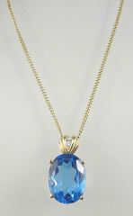 LOT 95 10K (marked) Yellow Gold Necklace (20"L) with Gold Tone Blue Stone Pendant, 7.9g. Estimate: $800 - $1,200 Auction Date: Tuesday, December 03 2024 at 4:00 PM