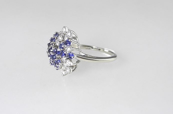 LOT 80 14K (marked) White Ceylonese Sapphire & Diamond Ring, Size 6 3/4, 5.17g. Estimate: $400 - $600 Sold For: $500 Auction Date: Tuesday, December 03 2024 at 4:00 PM