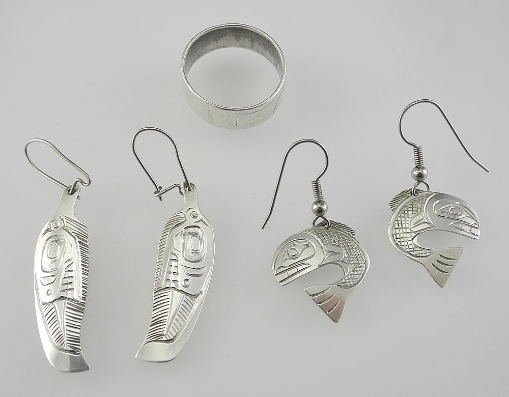 LOT 282 Collection of Northwest Coast Silver Jewelry: Seaweed/RS/Unmarked with Box, TW 11g. Estimate: $100 - $150 Auction Date: Tuesday, December 03 2024 at 4:00 PM