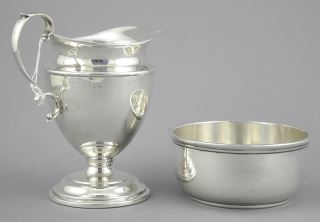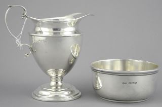 LOT 27 Hallmarked Silver Harlequin Cream Jug & Sugar Bowl, 158g. Estimate: $140 - $160 Sold For: $130 Auction Date: Tuesday, December 03 2024 at 4:00 PM