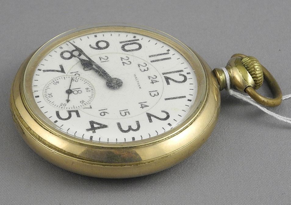 LOT 254 Gold Plated Waltham Pocket Watch, 2 1/8" Diameter. Estimate: $60 - $100 Sold For: $60 Auction Date: Tuesday, December 03 2024 at 4:00 PM