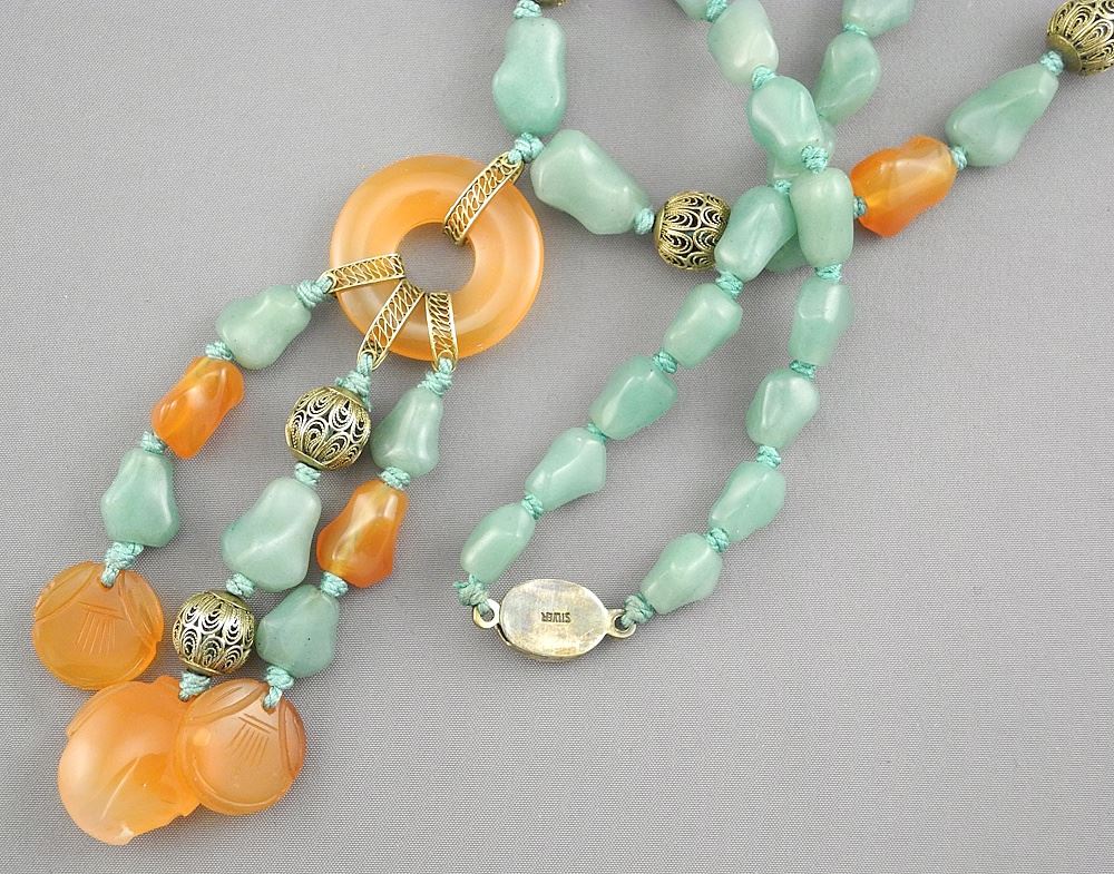 Chinese Jade & Agate Necklace with Silver (marked) Clasp, 23"L, with Box.