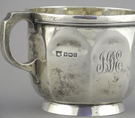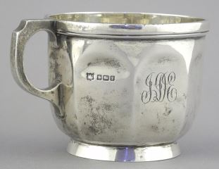 Octagonal Silver Mug: Fenton Bros./ Sheffield/1915, 2 3/4"h, 134g.