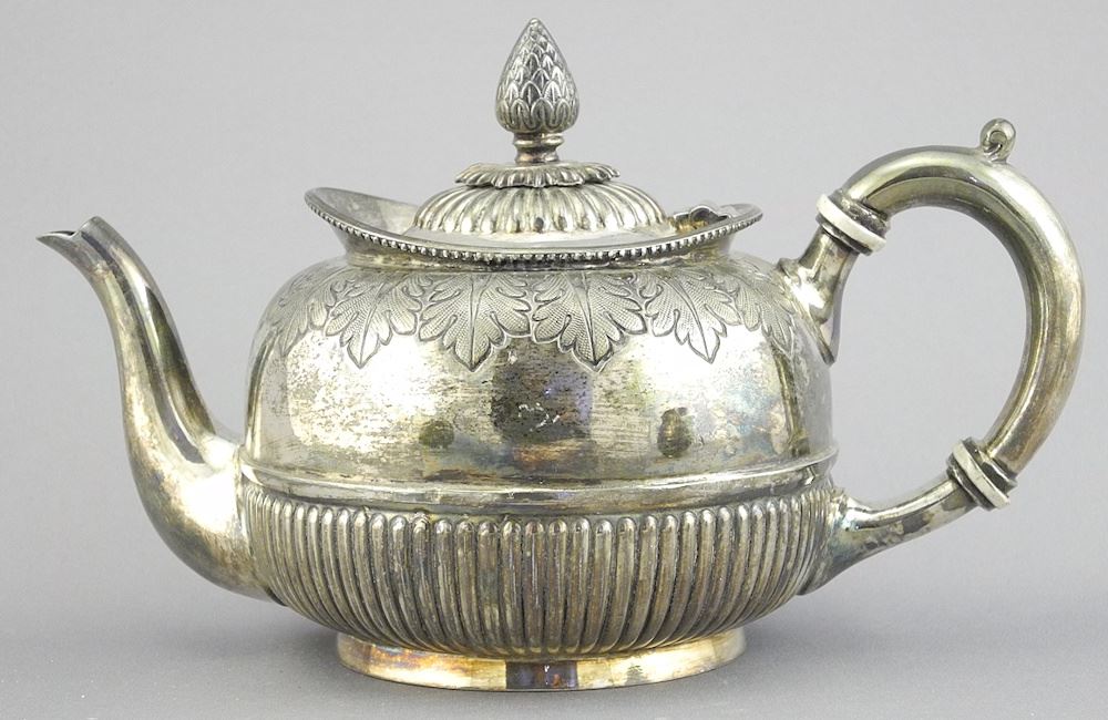 LOT 318 19th C. Silver Plated Two Cup Tea Set, Pot 7 1/2"L. Estimate: $50 - $60 Sold For: $30 Auction Date: Tuesday, April 08 2025 at 4:00 PM