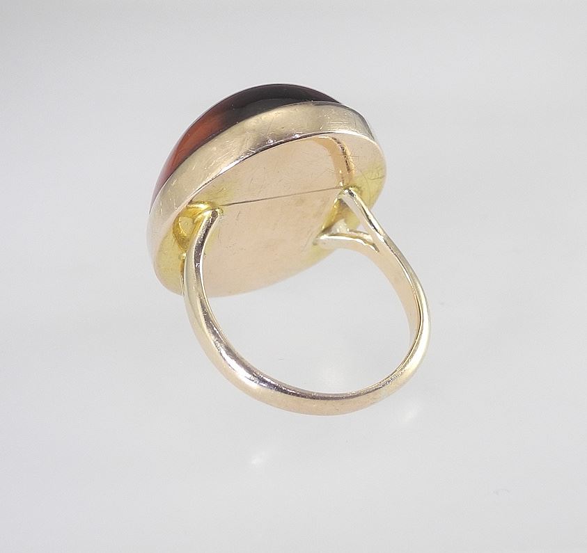 LOT 97 9ct (marked) Gold & Amber Cabochon Ring, Size 8 1/2, 8.3g. Estimate: $120 - $180 Sold For: $220 Auction Date: Tuesday, April 08 2025 at 4:00 PM