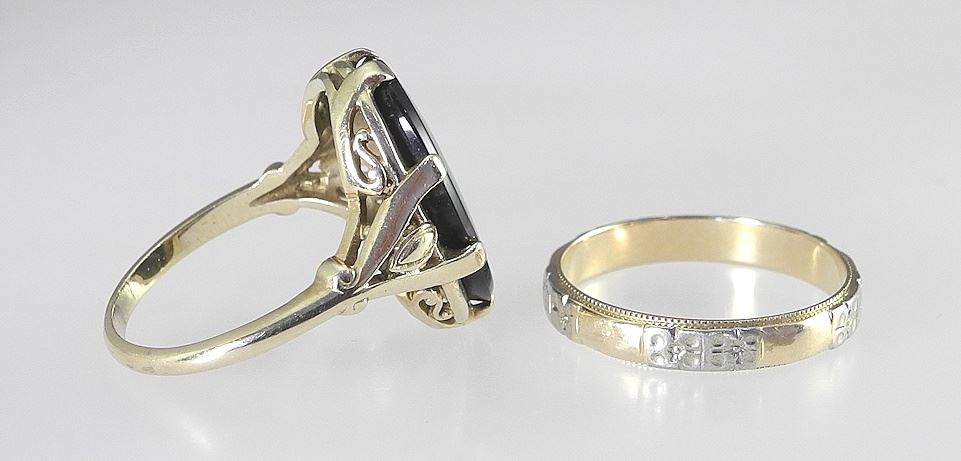 LOT 130 Two 10K (marked) Gold Rings, Size 9 3/4 & 10 1/2, TW 9.85g. Estimate: $200 - $300 Sold For: $325 Auction Date: Tuesday, April 08 2025 at 4:00 PM