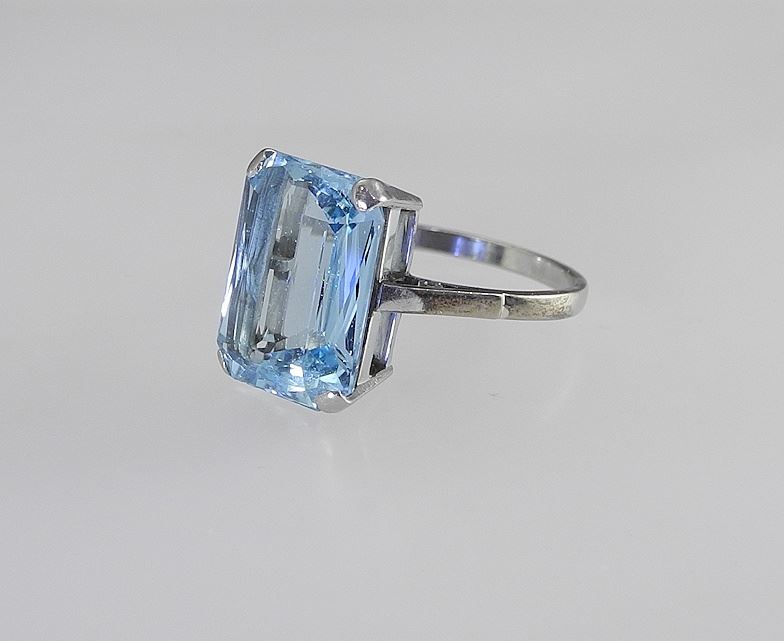 LOT 57 18K (marked) White Gold & Possibly Aquamarine Dinner Ring, Size 9, 6.8g with Box. Estimate: $350 - $450 Sold For: $325 Auction Date: Tuesday, April 08 2025 at 4:00 PM