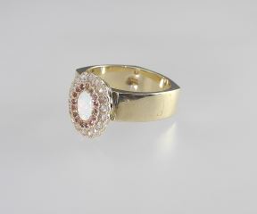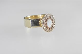 10K (marked) Gold Soft Square Ring with Antique Opal Feature, Size 8 1/4, 8.2g.