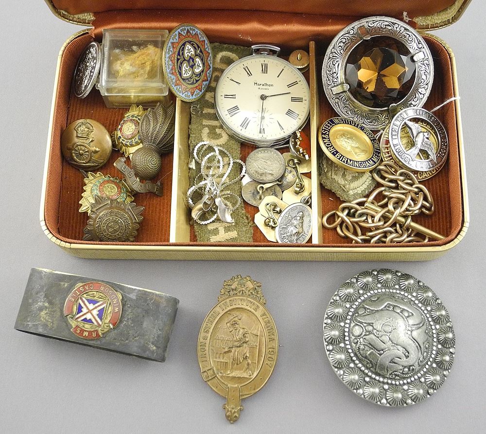 14K Cufflinks & Box with Gentleman's Sundries; Steel & Iron 1895, Militaria, etc.
