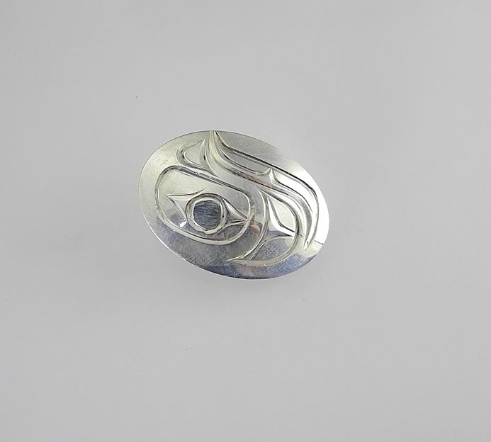 LOT 349 Kwagiulth Silver Pendant Monogrammed PS (Pat Seaweed), 1 1/8"h, 4.9g, "Salmon Egg". Estimate: $60 - $100 Sold For: $80 Auction Date: Tuesday, April 08 2025 at 4:00 PM