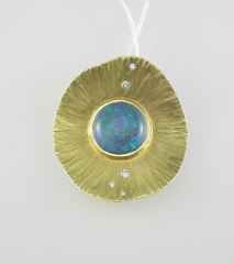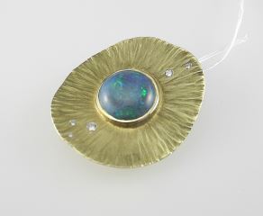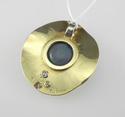 LOT 32 DeGoutiere 18K (marked) Gold Opal & Diamond Pendant, 1 5/8"h, 13.1g. Estimate: $1,000 - $1,500 Sold For: $1,200 Auction Date: Tuesday, April 08 2025 at 4:00 PM
