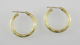 Pair of Italian 14K (marked) Gold Hoop Earrings, 1" Diam., 3.0g.