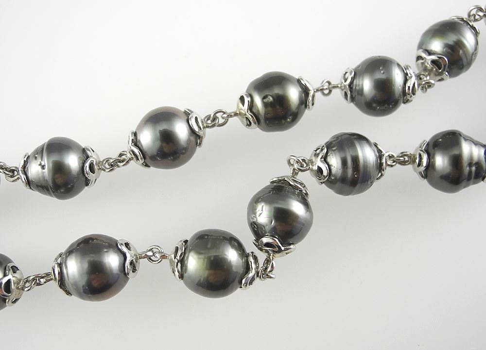 LOT 250 Tahitian Black Pearl & Sterling (marked 925) Silver Necklace, 14"L, 39.6g. Estimate: $100 - $200 Auction Date: Tuesday, April 08 2025 at 4:00 PM