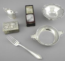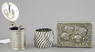 LOT 256 Collection of Hallmarked Silver Sundries" Cherub Choir / Mustard / Asprey, 5pcs., 293g. Estimate: $200 - $300 Sold For: $250 Auction Date: Tuesday, April 08 2025 at 4:00 PM