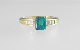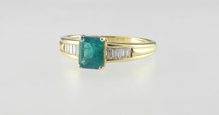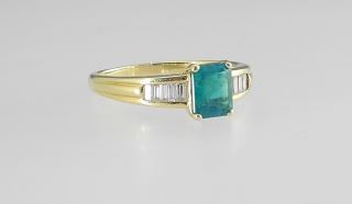 18K (marked) Yellow Gold Emerald & Diamond Ring, Size 11 1/2, 5.46g.