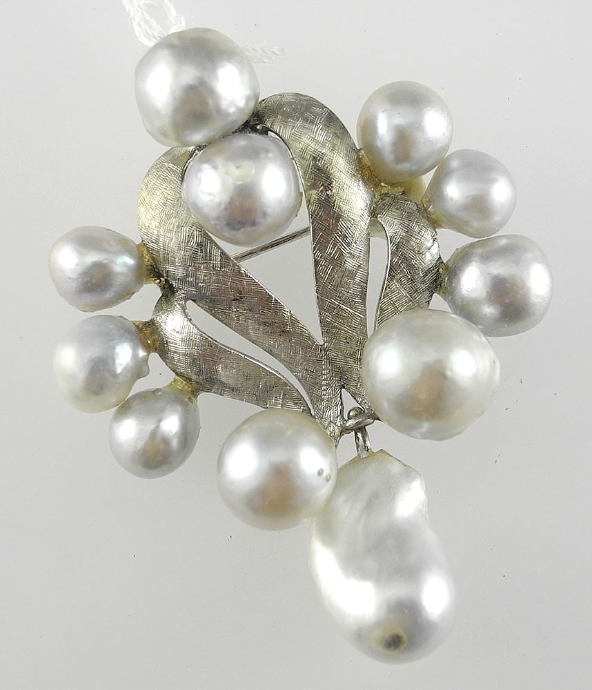 14K (marked) White Gold & Grey Pearl Pendant (14.6g) with Earrings & Spare Pearls.