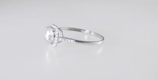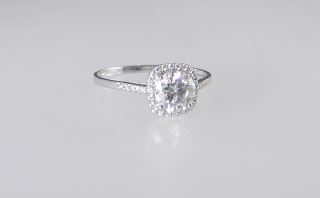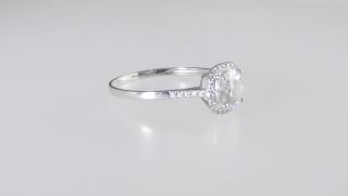 18K (marked 750) White Gold & Moissanite Ring, Size 8 3/4, 1.1g.