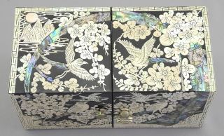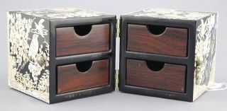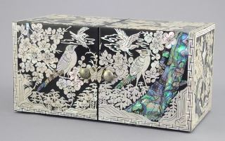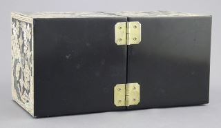 LOT 65 Chinese Hinged Double Square Form Jewelry Box, Mother of Pearl Inlaid. Estimate: $60 - $100 Sold For: $130 Auction Date: Tuesday, April 08 2025 at 4:00 PM