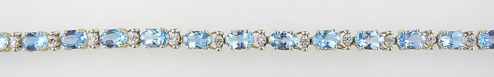 10K (marked) Gold Swiss Blue Topaz & Diamond Accent Tennis Bracelet, 7 1/2"L, 8.6g.