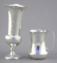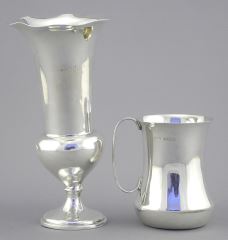 Hallmarked Silver Cup (59g) & Dented Vase with Weighted Base, TW 222g.