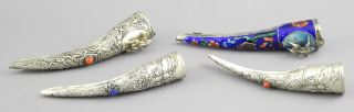 LOT 243 4 Mandarin Enameled White Metal Finger Guards. Estimate: $150 - $200 Auction Date: Tuesday, April 08 2025 at 4:00 PM