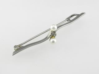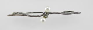 LOT 180 Unmarked White Gold Tone Brooch with Diamonds & Pearls, 2", 1.98g. Estimate: $100 - $200 Sold For: $45 Auction Date: Tuesday, April 08 2025 at 4:00 PM