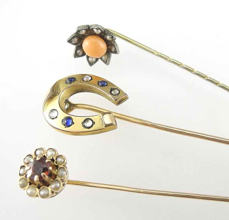 Three Gold-Tone Stick Pins, 2 1/4"L.