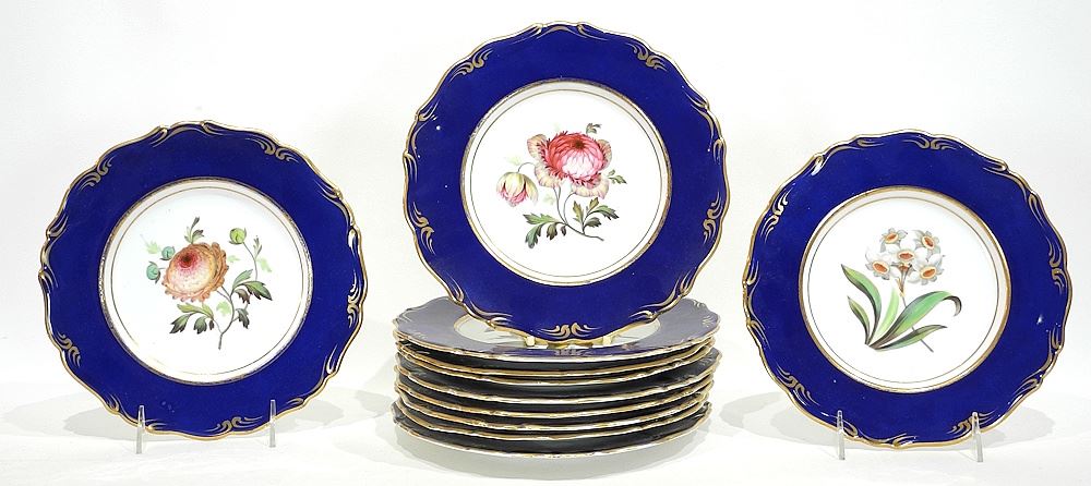 LOT 193 Mid 19th C. China Dessert Service Pattern 1821, Cobalt & Floral Compote, 8 1/4 x 14 1/2 x Estimate: $300 - $500 Auction Date: Tuesday, April 08 2025 at 4:00 PM