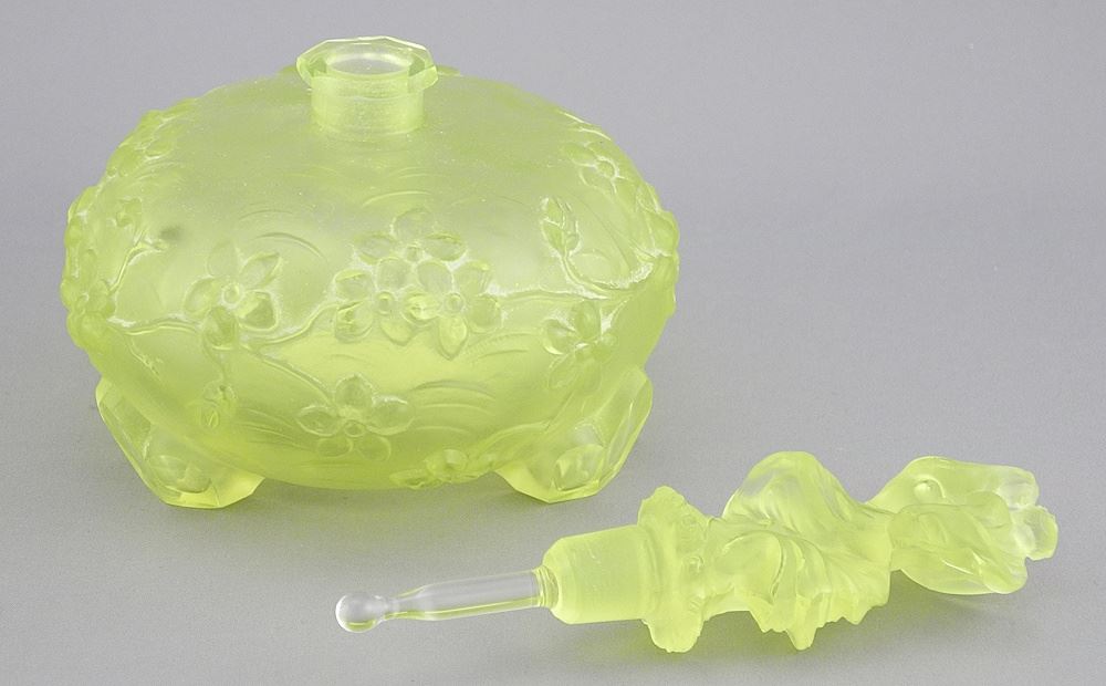 Vintage Uranium Glass Perfume Bottle , 5 3/8"h.