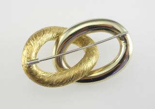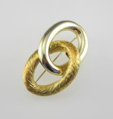 LOT 100 18K (tested) Yellow Gold Double Chain Link Brooch, 2"w, 23.5g. Estimate: $1,800 - $2,000 Sold For: $1,800 Auction Date: Tuesday, April 08 2025 at 4:00 PM