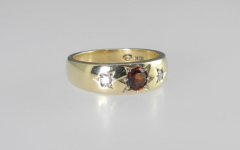 10K Gold Ring Set with Ruby & Diamonds, TW 7.16g.