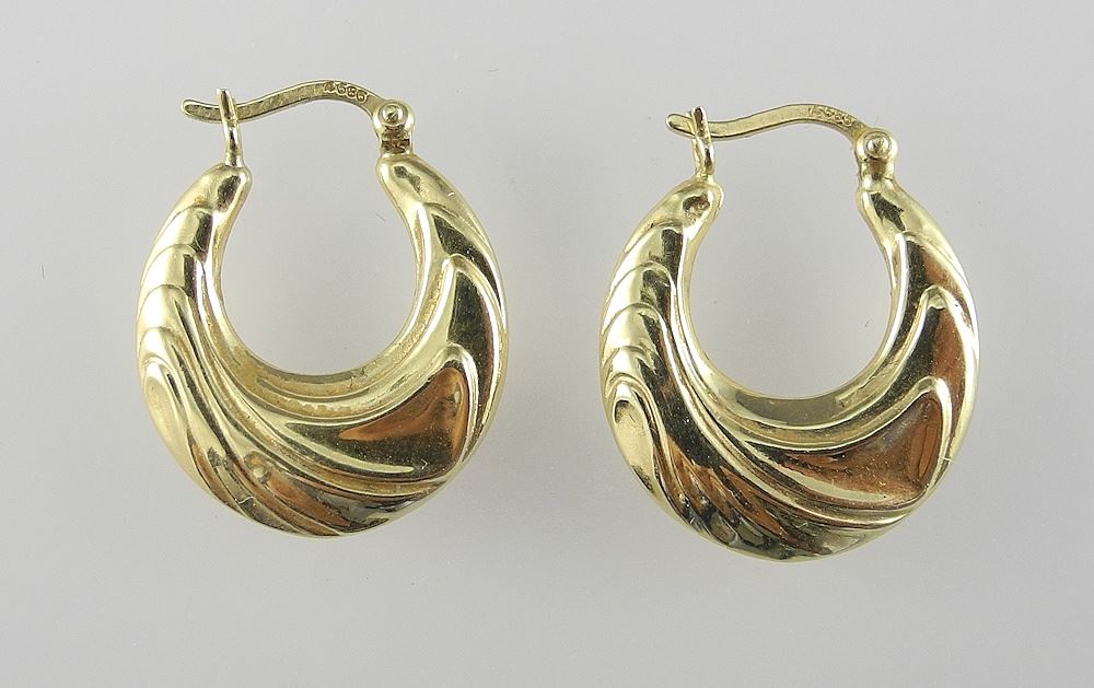 LOT 126 Pair of 14K (marked 585) Gold Earrings, 3/4"w, 1.7g. Estimate: $120 - $220 Auction Date: Tuesday, April 08 2025 at 4:00 PM