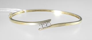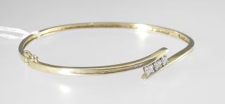 LOT 80 14K (tested) Gold & Diamond Hinged Bangle, 2 1/4"w, 5.5g. Estimate: $300 - $450 Sold For: $550 Auction Date: Tuesday, April 08 2025 at 4:00 PM