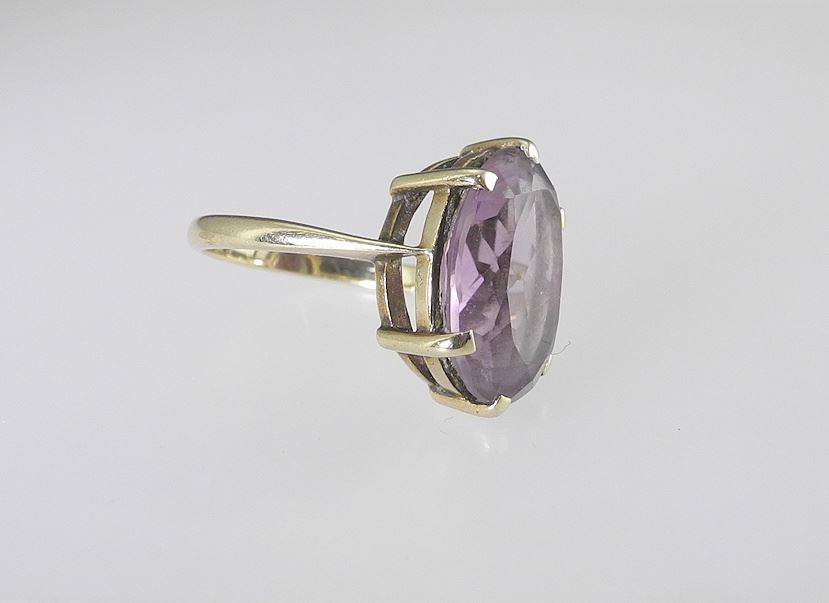 LOT 158 9c (marked) Gold & Amethyst Ring, Size 7 1/4, 4.5g. Estimate: $100 - $150 Sold For: $110 Auction Date: Tuesday, April 08 2025 at 4:00 PM