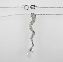 LOT 202 10K (marked 10K & 417) White Gold & Topaz Necklace & Pendant, 16 1/2"L, 1.8g. Estimate: $100 - $150 Sold For: $70 Auction Date: Tuesday, April 08 2025 at 4:00 PM