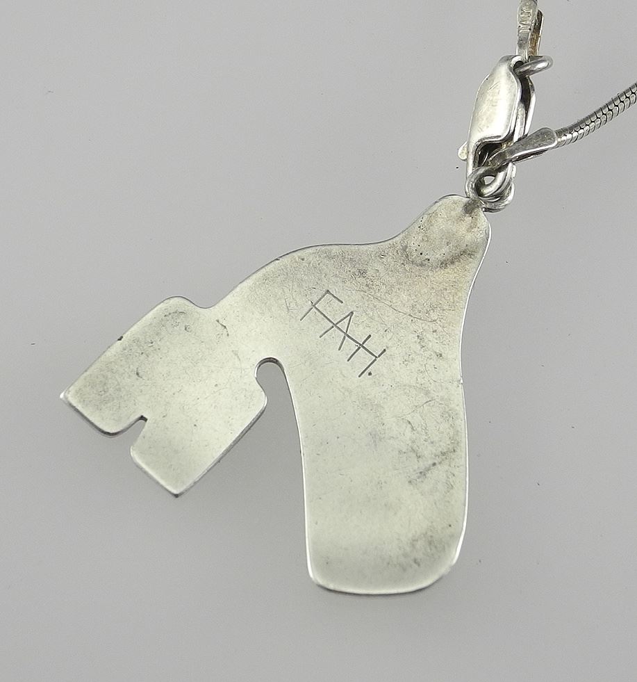 LOT 346 Kwagiulth Silver "Orca" Pendant Monogrammed FAH (Ambers) on Chain (17"L), 8.5g. Estimate: $80 - $120 Sold For: $100 Auction Date: Tuesday, April 08 2025 at 4:00 PM