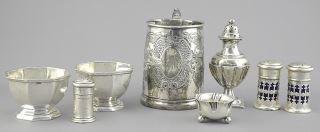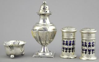 Collection of Hallmarked Silver Condiments, 140g & Plated Cup.
