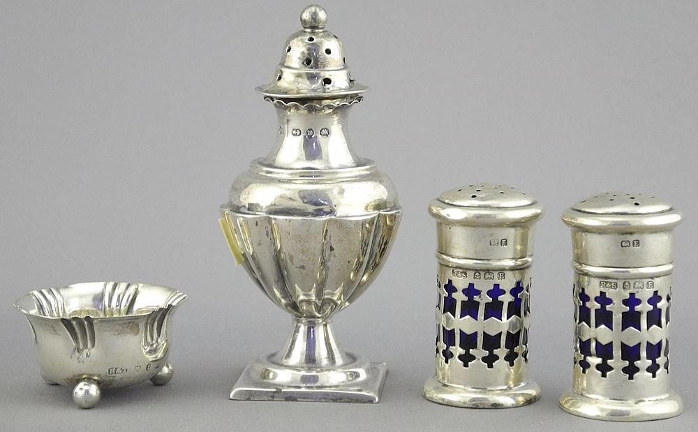 LOT 208 Collection of Hallmarked Silver Condiments, 140g & Plated Cup. Estimate: $160 - $220 Sold For: $120 Auction Date: Tuesday, April 08 2025 at 4:00 PM