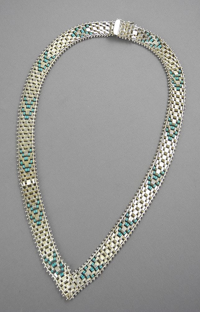 Silver (925) & Turquoise Bead Necklace, 15"L, 51g.