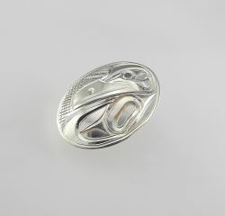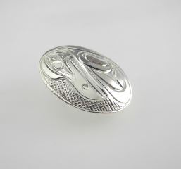 LOT 345 Kwagiulth Silver Pendant Monogrammed PS (Pat Seaweed), 1 1/8"h, 4.7g, "Raven". Estimate: $60 - $100 Sold For: $90 Auction Date: Tuesday, April 08 2025 at 4:00 PM